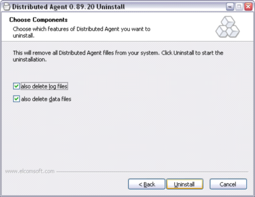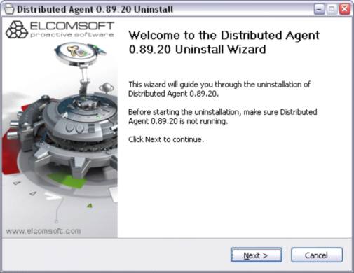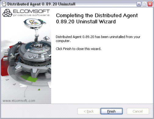 To uninstall the ElcomSoft Distributed Agent in the computer: